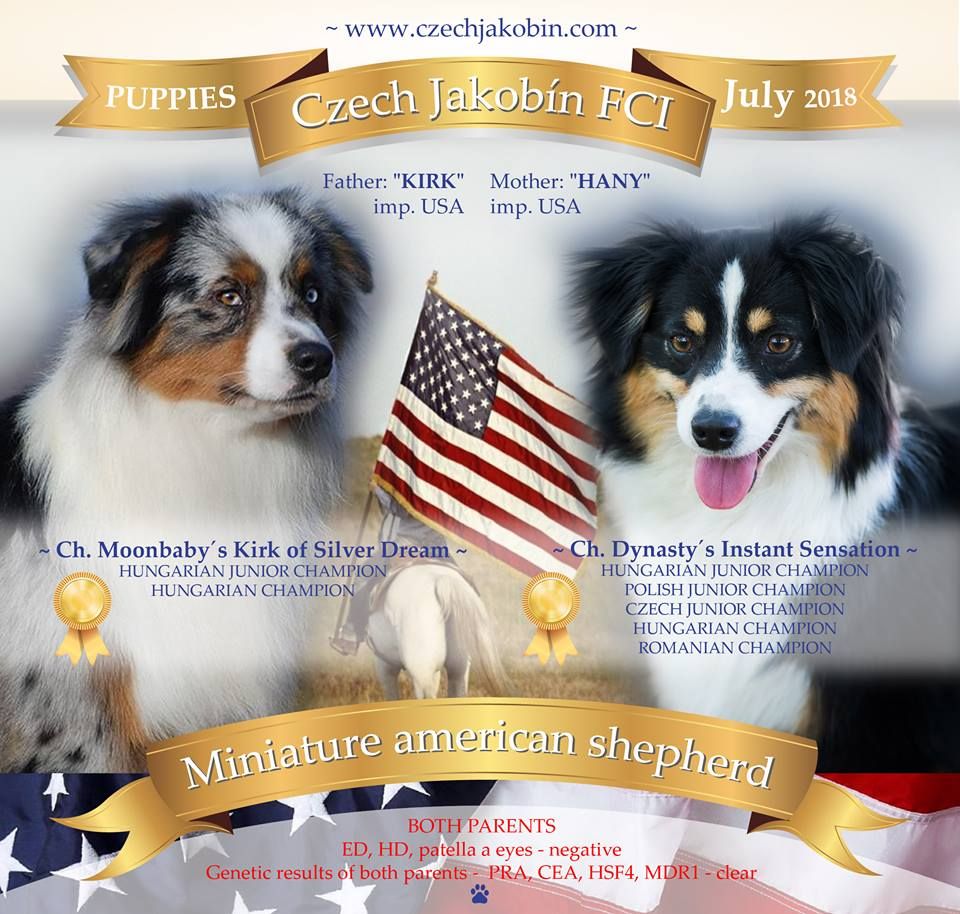 Miniaturní americký ovčák VRH "A" Akim a Amy Czech Jakobín Amy Czech Jakobín Akim Czech Jakobín
